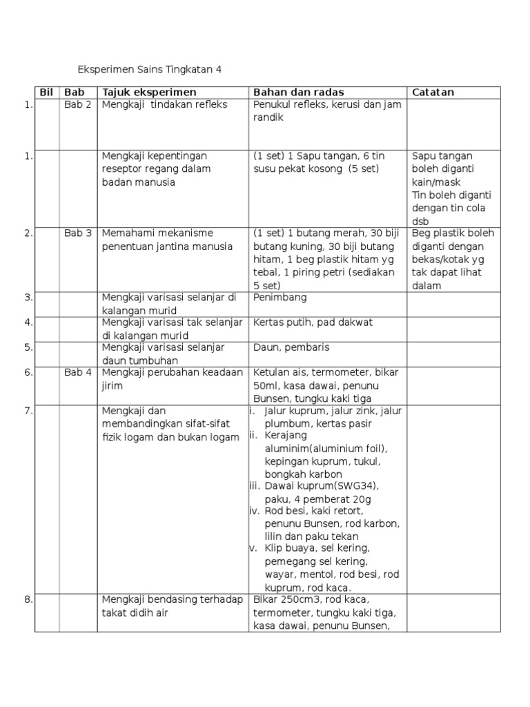 Eksperimen Wajib Sains T4 T5 Kssm Berserta Gambarajah Pdf